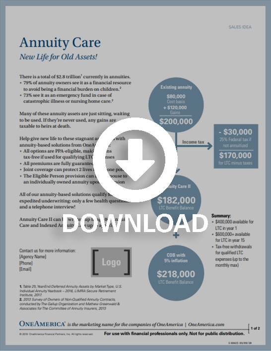 For decades, Americans have relied on OneAmerica® Care Solutions asset-based long-term care products as they prepare for the future.